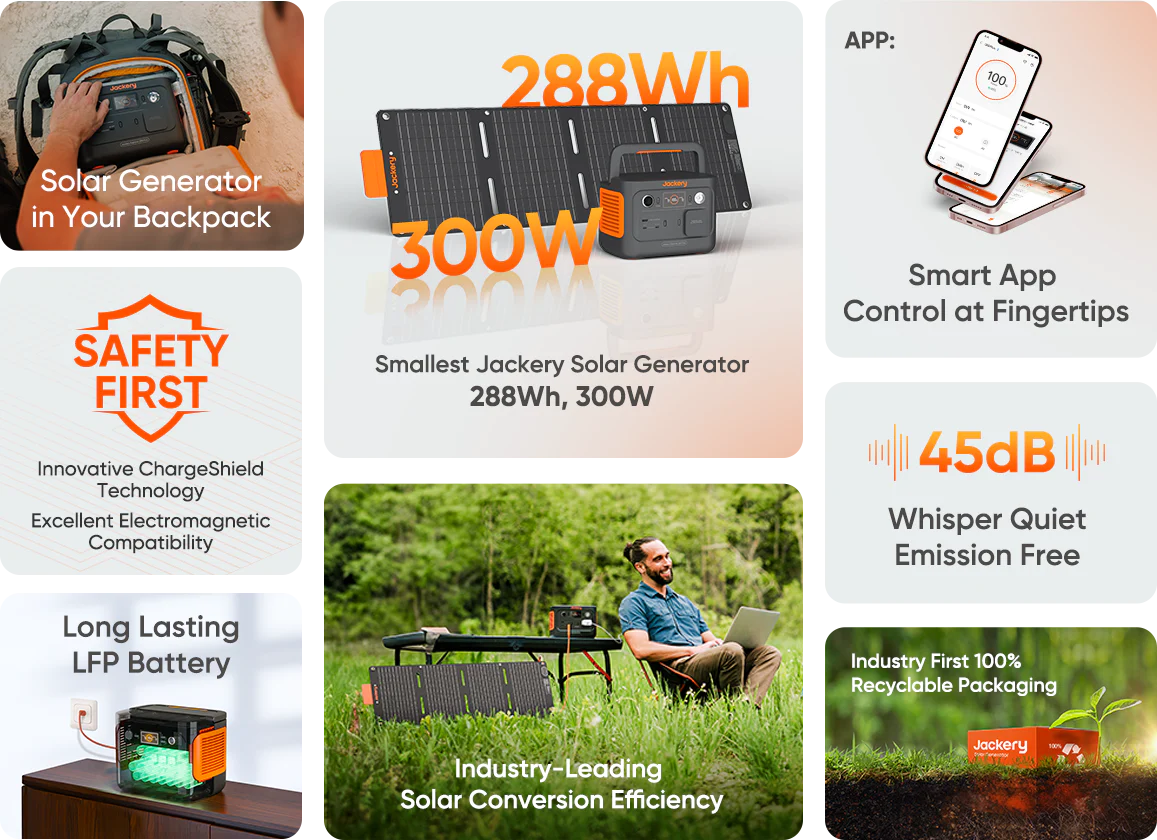 - JJackery Solar Generator ที่เล็กที่สุด, 288Wh, 300W